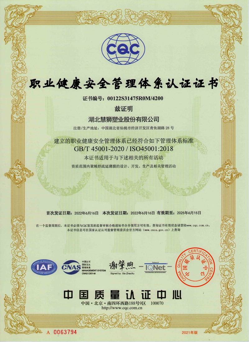 湖北慧獅塑業(yè)股份有限公司是一家專業(yè)從事研發(fā)、生產(chǎn)、銷售高性能聚烯烴流延薄膜的高新技術(shù)企業(yè)。